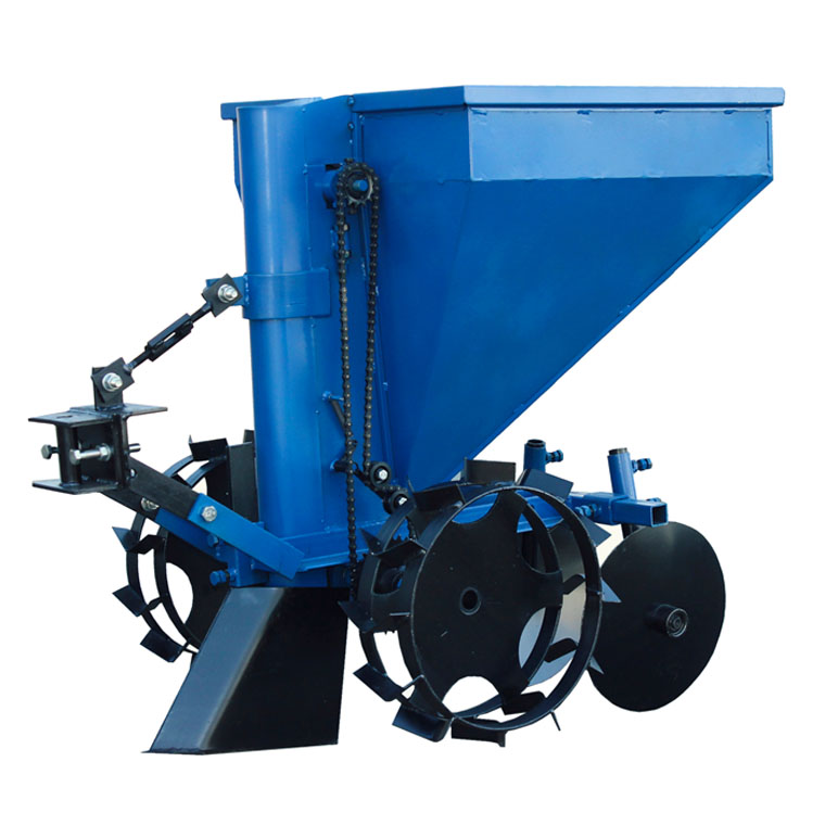Картоплесаджалка дворядна до минитрактору з бункером для внесення мінеральних добрив.